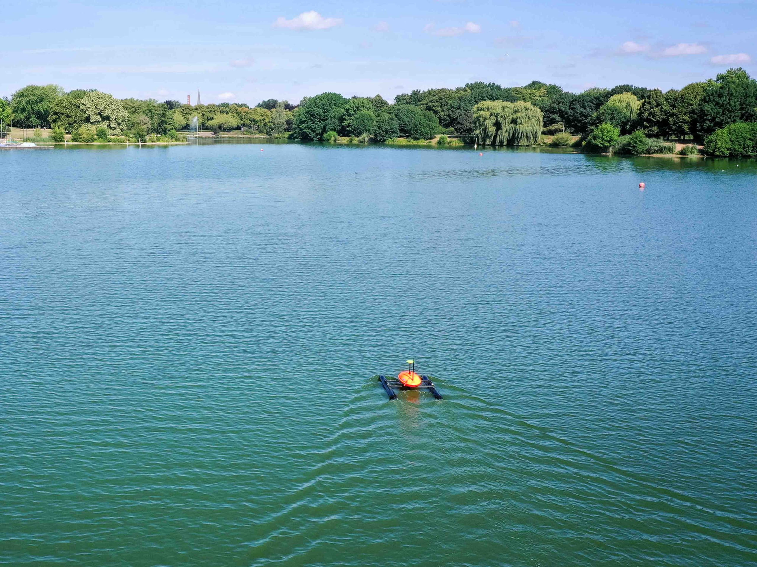 © Stadt Bocholt | Die schwimmende Sonde zieht in geraden Bahnen über den Aasee
