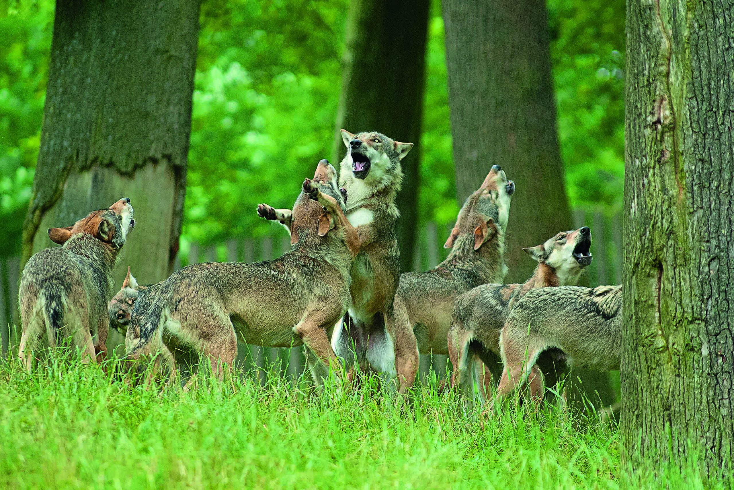 © Thomas Henning | Ein Rudel Wölfe im Spiel vertieft / im Wisentgehege Springe ( S. 6-7 )